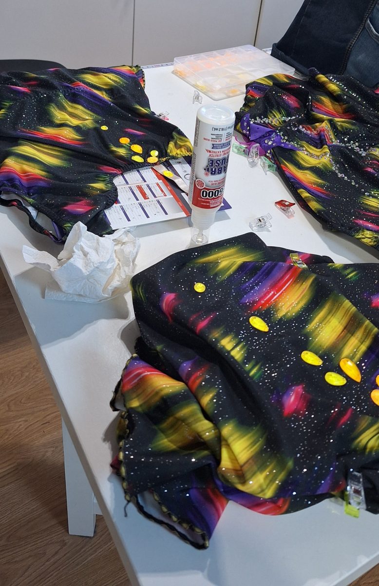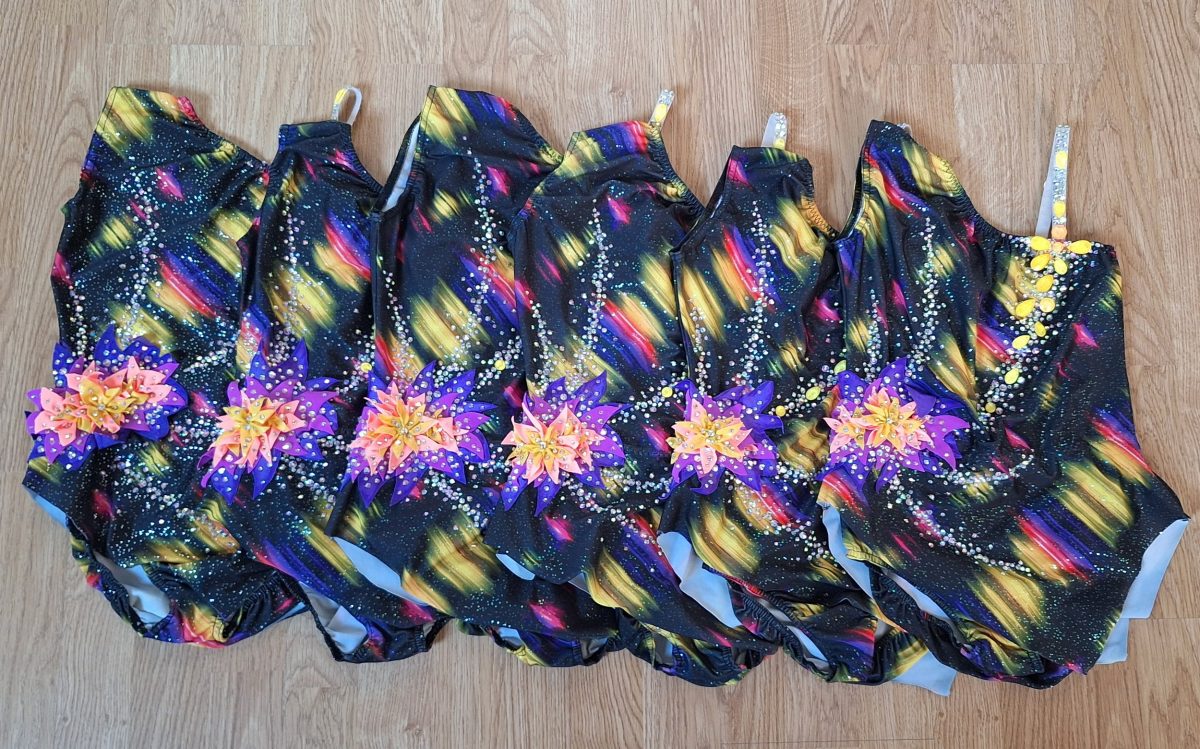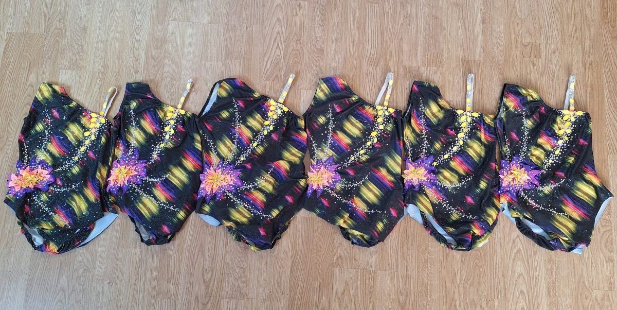 Customisation de 3 petits justaucorps Agiva que l’on avait depuis de nombreuses années au club. Pour la petite histoire, avoir seulement 3 justaucorps ne nous arrangeait pas : ce n’est pas suffisant pour une équipe. Nous en avons trouvé un 4ème sur Vinted, et il a subi le même sort !