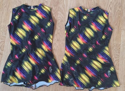 Customisation réalisée pour le club, en partant de 2 petits justaucorps noirs à bretelles, sans jupette, vendus par Artiligne.